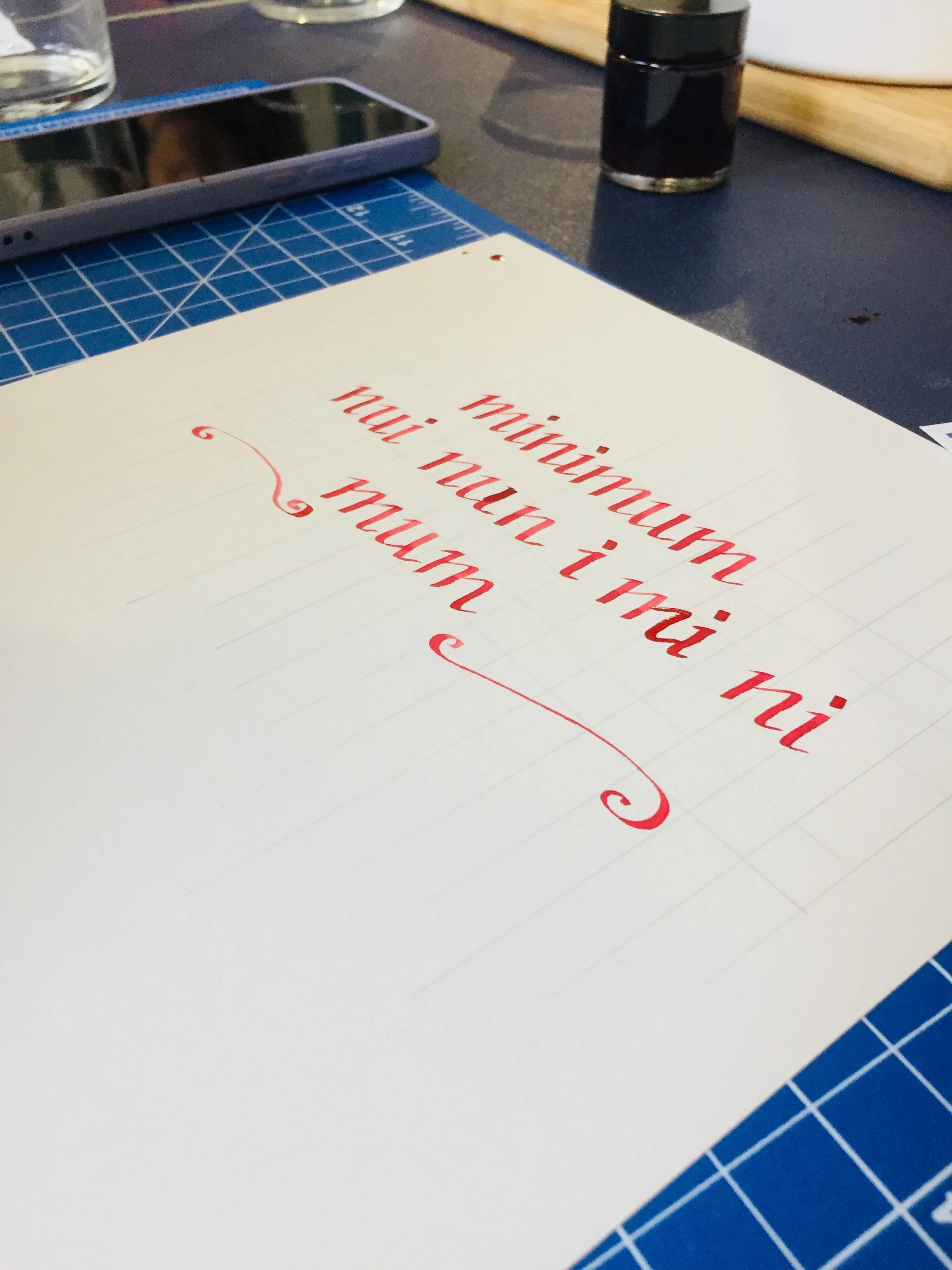In Workshop 2, we continue working with the Chancery script, building on what was learned previously. We further develop the alphabet and explore the refinement and coherence of the letterforms. Caroline demonstrates how individual letters come together to form a balanced and harmonious script.